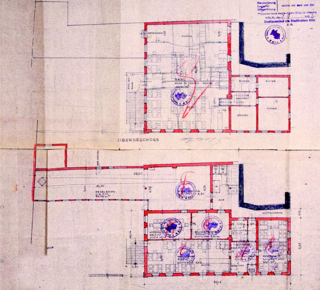 Ende der 50er Jahre wurden die Flüchtlingszimmer im Tanzsaal zu zwei geräumigen Wohnungen umgebaut. 1961 wurde, nach langem zähen Ringen mit dem Kölner Bauamt, die alte Eisentreppe zum Tanzsaal durch ein modernes, überdachtes Treppenhaus ersetzt.