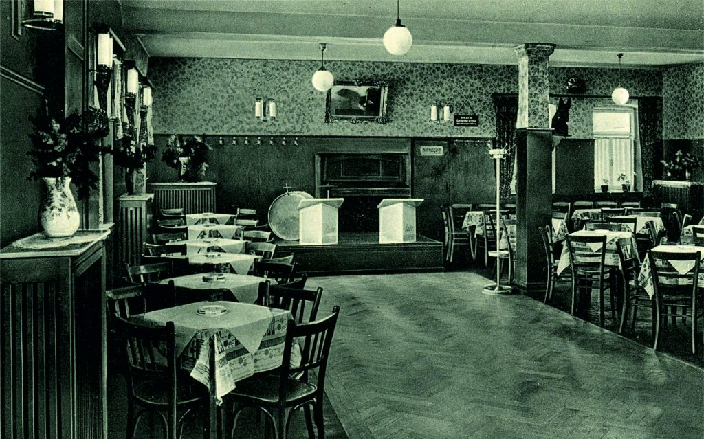 Das großelterliche Häuschen wurde dafür abgerissen und das Gaststättengebäude um diesen Grundriss erweitert. Der große Tanzsaal war über eine breite eiserne Außentreppe zu erreichen.